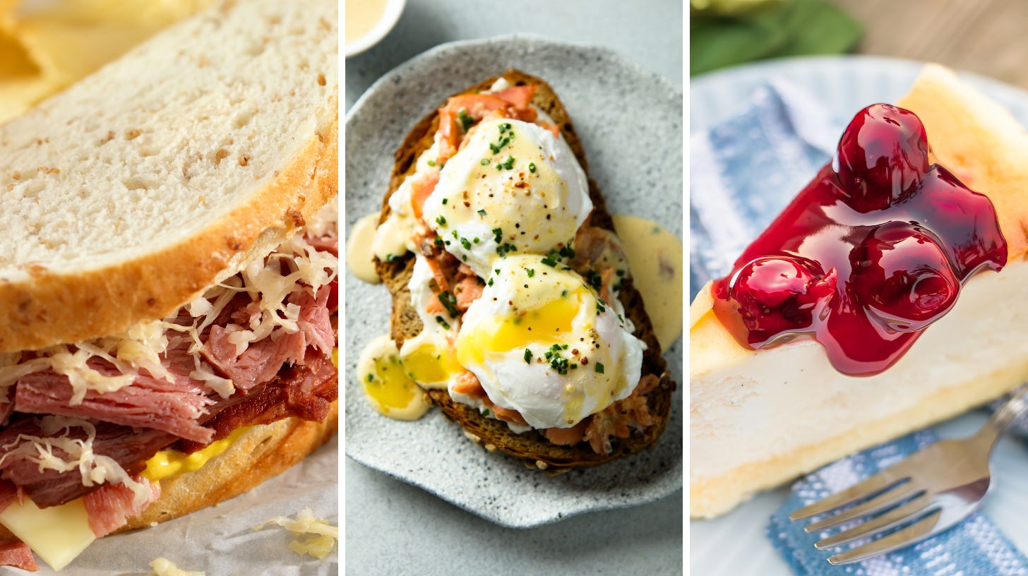 Dacă sandvișul cu pastramă spune povestea migrației est-europene, Eggs Benedict și New York cheesecake vorbesc despre alt tip de New York: cel al brunch-ului, al diner-elor, al ritualurilor urbane care au transformat mesele simple în repere culturale.