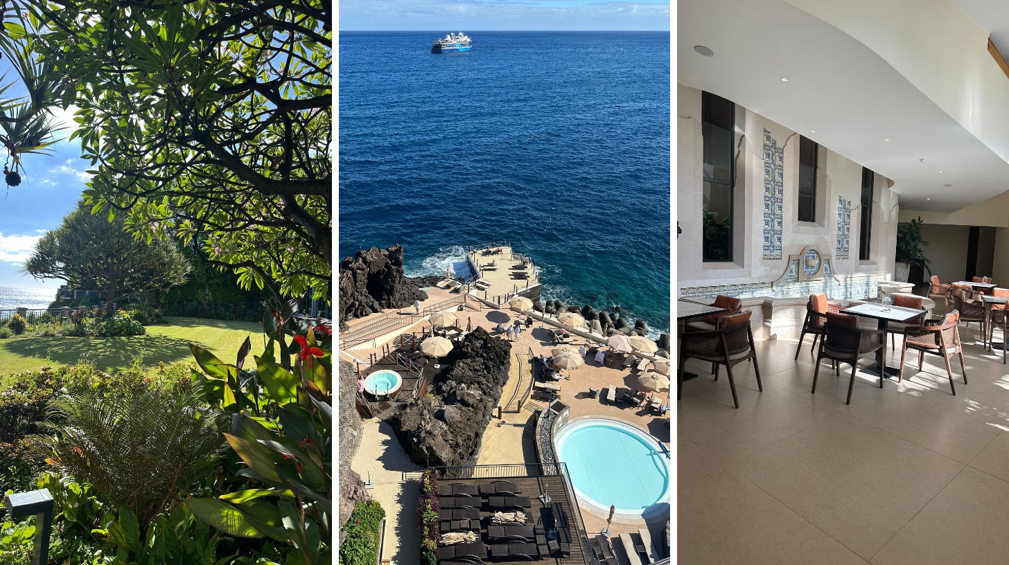 Aici totul e simplu și bine făcut: camere cu vedere, o piscină cu apă sărată la nivelul mării și un restaurant cu două stele Michelin. Mi-a plăcut ordinea locului și felul discret în care curge totul. Dacă vreți Madeira într-o cheie clasică și rafinată, asta e alegerea.