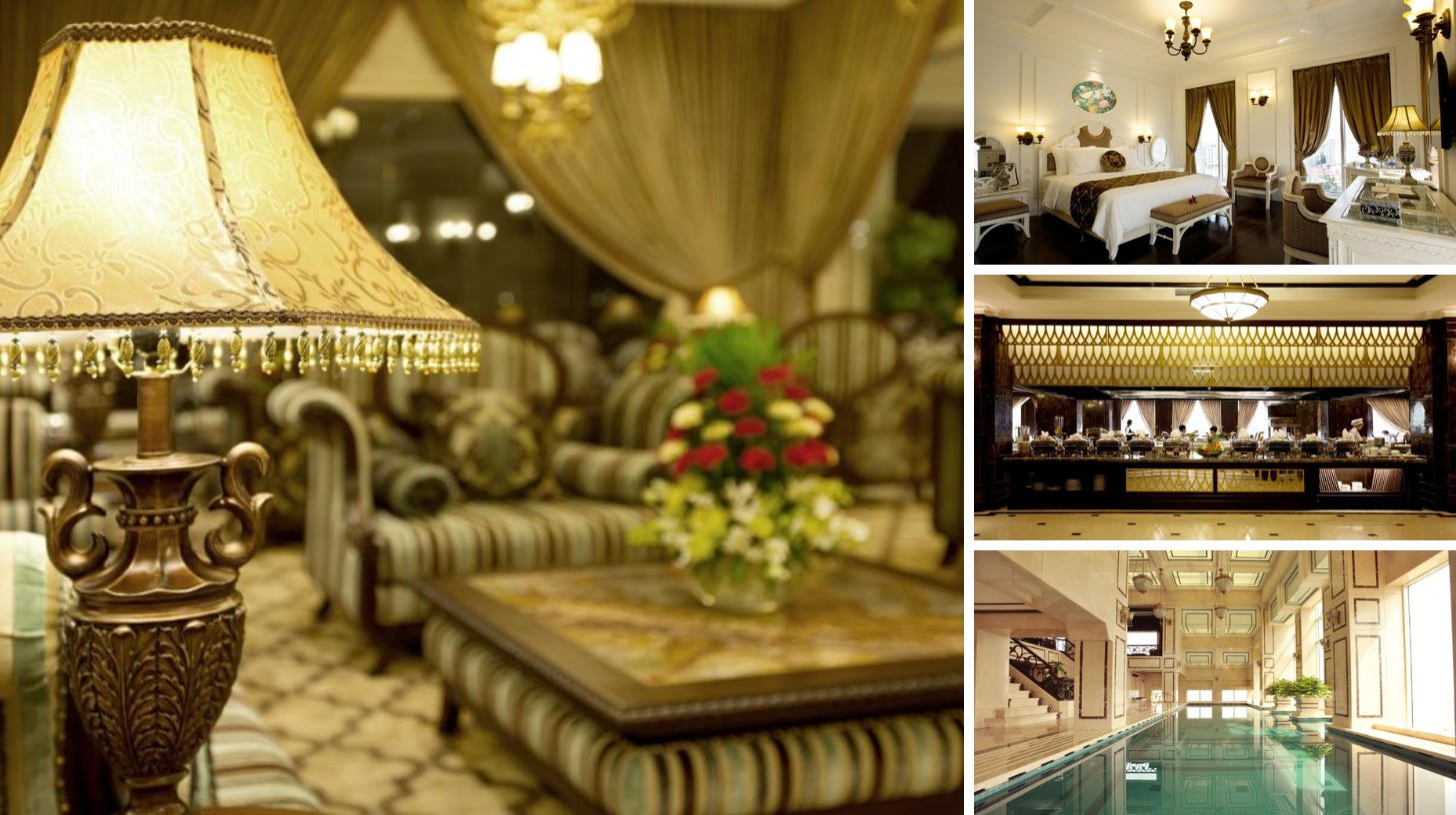 Recomandarea mea pentru Hanoi este acest hotel căruia personal nu am reușit să-i găsesc cusur în cele 3 nopți pe care am avut norocul să le petrec aici. Luxos, elegant, rafinat și cu un bun gust desăvârșit, reușind cumva să fie luminos deși nuanțele mobilierului și ale parchetului sunt pe bază de culori închise (negru, maro, albastru), Sinfonia del Rey oferă tot ceea ce îți poți dori de la un hotel „de oraș”. În plus, poziționarea este perfectă: la o aruncătură de băț de lacul Hoan Kiem, cel pe malul căruia localnicii își fac gimnastica de dimineață și joggingul de zi cu zi, la cinci minute de centrul istoric, epicentrul distracției din întreg Vietnamul, nu doar din Hanoi, și în proximitatea cartierului francez, zona unde vă puteți ostoi dorul de Bătrânul Continent. Punctul de rezistență este Sky Bar-ul Terraco, de unde puteți admira apusul peste lacul Hoan Kiem cu o băutură răcoritoare sau încălzitoare (de suflete) în față.