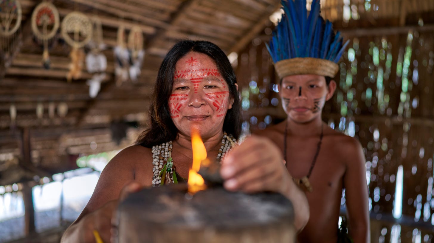 Unul dintre șamanii cu care lucrez spune că trebuie să faci spațiu ca să se petreacă această conexiune subtilă, iar dacă ești suficient de atent și liniștit, prin salba de ceaiuri vindecătoare, cataplasme cu plante necunoscute, care îți iau durerea cu mâna, sau saune cu ierburi aromatice, se creează acel spațiu magic în care vezi, dimineața devreme, maimuțele trecând pe sub pod ca să mănânce mango, sau, noaptea târziu, găsești un oposum ascuns în prosopul tău mare, alb, de baie.